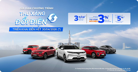 Ưu đãi thêm 3% khi tham gia chương trình thu xe cũ – đổi xe điện